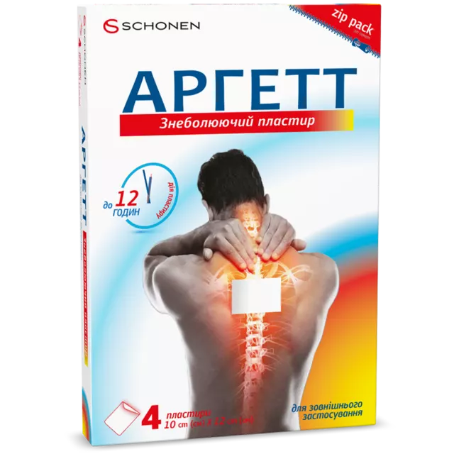 Засоби підходять для дорослих, а також дітей: пластир – старше 12 років, спрей – старше 14 років. Засіб Аргетт у формі спрею та пластиру відпускається без рецепта. Проте самолікування може принести шкоду вашому здоров’ю. Перед тим як придбати або використати засоби для опорно-рухового апарату, рекомендуємо проконсультуватися з лікарем.