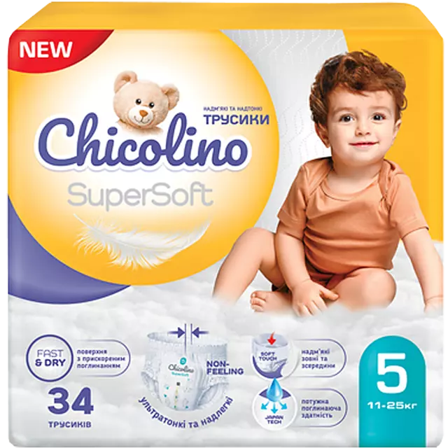| Підгузники-труси для дітей Чіколіно Супер Софт (Chicolino Super Soft) (11-25 кг) розмір 5 34 шт | 535.5 ₴ |