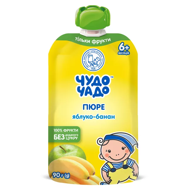 | Пюре фруктове Чудо-Чадо яблуко-банан без цукру з 6 місяців 90 г (пауч) | 28.73 ₴ |
