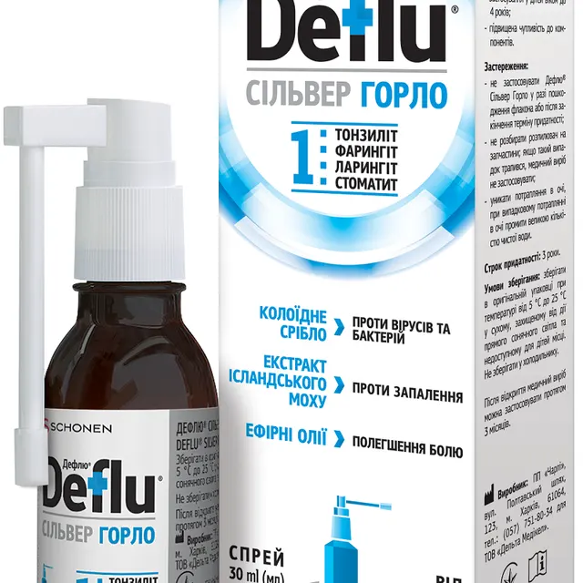 | Дефлю Сільвер Горло спрей для горла флакон 30 мл | 206.5 ₴ |