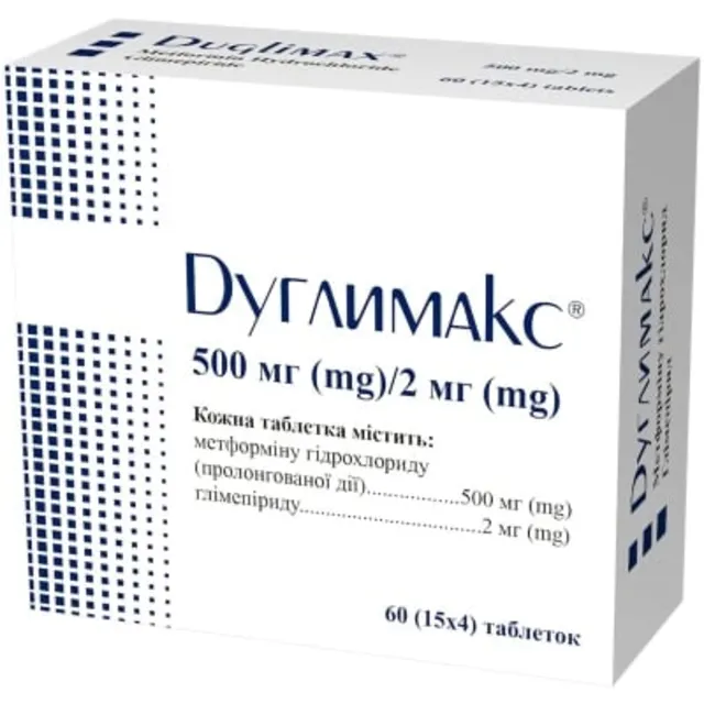 | Дуглимакс таблетки 500 мг/2 мг №30 | 220 ₴ |
