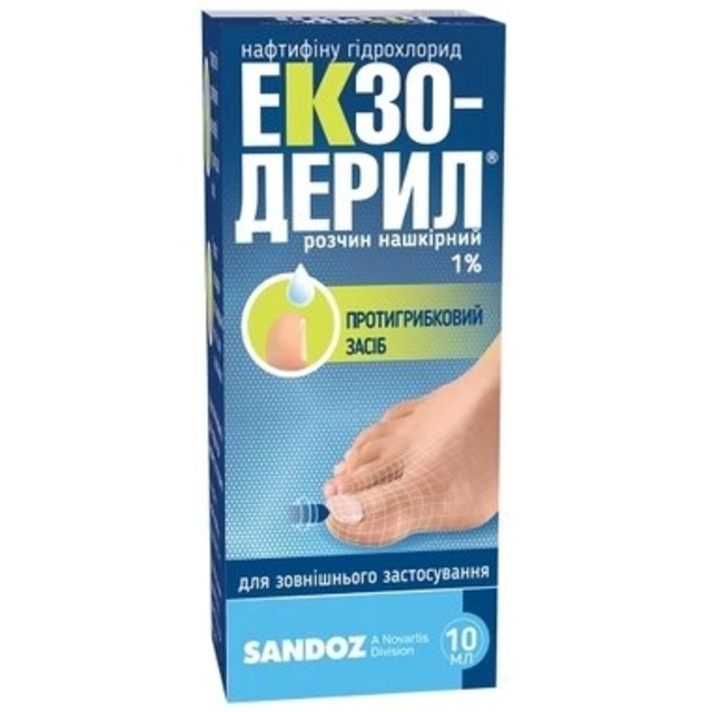 - Екзодерил розчин 1% по 10, 20 мл;