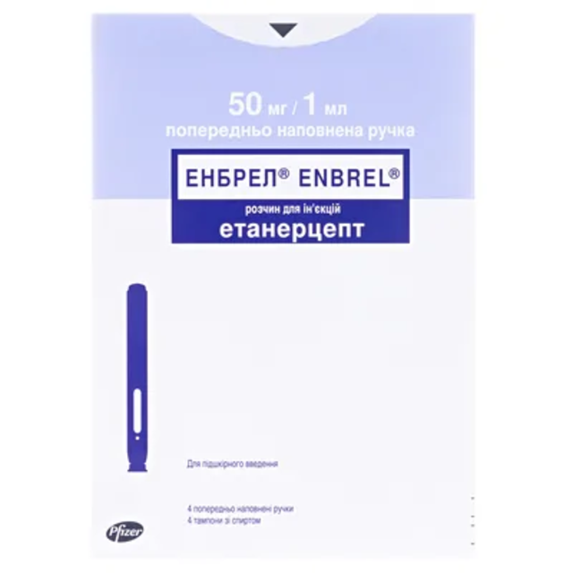| Енбрел розчин для ін'єкцій 25 мг шприц 0,5 мл №4 | 7714 ₴ |