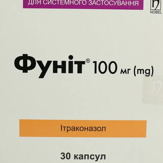 Фуніт – лікарський засіб, що належить до протигрибкових препаратів для системного застосування. Активною речовиною є ітраконазол, який походить від триазолу. Він діє на грибки, блокуючи утворення ергостеролу. Ітраконазол ефективний проти більшості дріжджів і пліснявих грибків, але переважно не діє на зигоміцети.