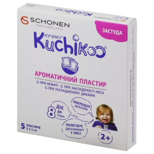 | Кучику Застуда ароматичний пластир від нежитю, при закладеності носа, ускладненому диханні розмір 5*5 см 5 штук | 217 ₴ |