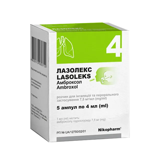 | Лазолекс розчин для інгаляцій та перорального застосування 7,5 мг/мл ампули 4 мл №5 | 106 ₴ |