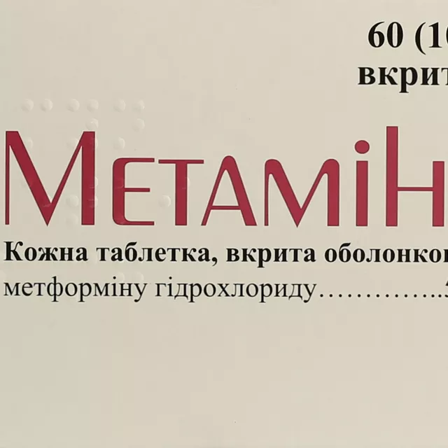 | Метформін таблетки вкриті оболонкою 500 мг №60 (10х6) | 31.2 ₴ |