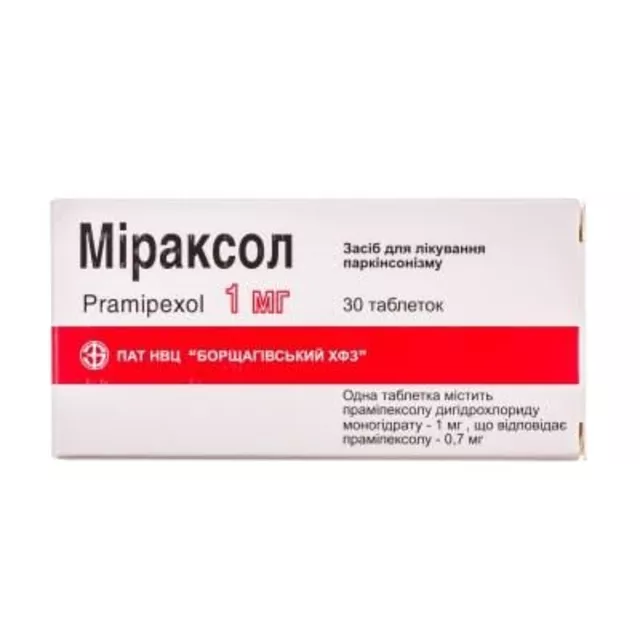 | Мірапекс ПД таблетки пролонгованої дії 1,5 мг №30 | 2646 ₴ |