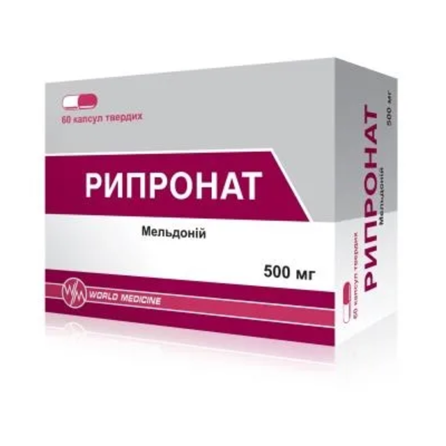 Тверді капсули Рипронат з активною речовиною мельдоній, випускаються виробником у дозуванні 250 мг та 500мг.