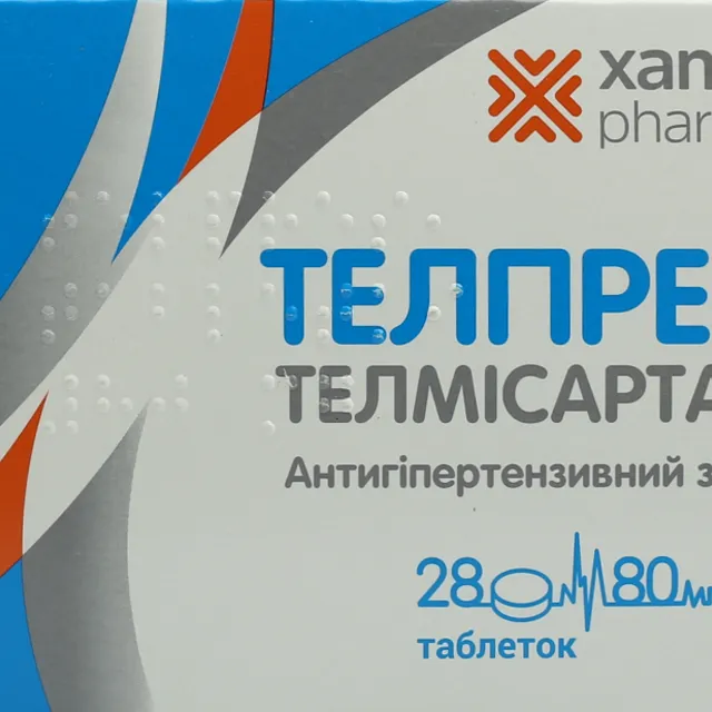 - Телпрес Плюс з гідрохлоротіазидом – таблетки 80 мг+12,5 мг;