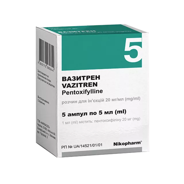 Вазитрен – це лікарський засіб, що належить до групи периферичних вазодилататорів. Основна діюча речовина препарату – пентоксифілін, що є похідним метилксантину. Сполука діє шляхом пригнічення фосфодіестерази та збільшення циклічного аденозинмонофосфату у клітинах різних тканин і органів. Це призводить до покращення реологічних властивостей крові, зменшення її в'язкості й покращення кровопостачання до мозкових тканин. Крім того, пентоксифілін має здатність розширювати судини та позитивно впливати на функцію серця. Вазитрен ефективний у лікуванні енцефалопатії, інсульту та інших порушень периферичного кровообігу, що пов'язані з розладами мікроциркуляції й трофіки тканин.