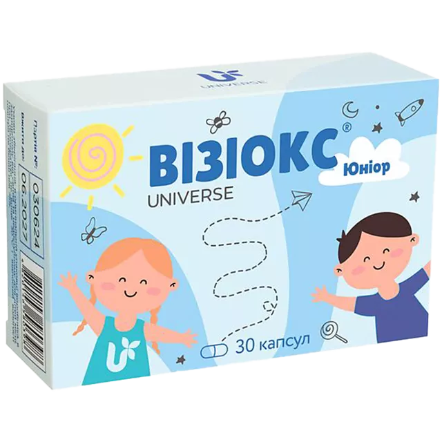 - Візіокс Юніор: для дітей від 4 років по одній капсулі на день. Тривалість вживання – 30 днів;
