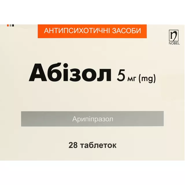 «Абізол таблетки 5 мг №28, Нобел» – це антипсихотичний лікарський засіб, що застосовується для лікування шизофренії та біполярного розладу. Основною діючою речовиною є арипіпразол, який чинить вплив на дофамінові та серотонінові рецептори, допомагаючи контролювати симптоми психічних розладів. Препарат доступний у формі таблеток і відпускається за рецептом лікаря.