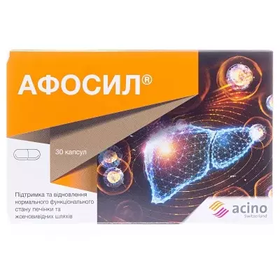 Показання до використанняАФОСИЛ® може бути рекомендована в якості дієтичної добавки до раціону харчування як додаткове джерело вітаміну Е, силібініну, фосфатидилхоліну та інших біологічно активних речовин, які сприяють підтримці та відновленню нормального функціонального стану гепатобіліарної системи печінки та жовчовивідних шляхів, регенерації клітин печінки.
