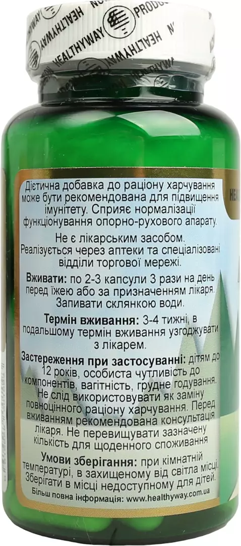 Спосіб застосуванняВживати дорослим по 2–3 капсули 3 рази на добу перед прийомом їжі або за призначенням лікаря, запивати водою.