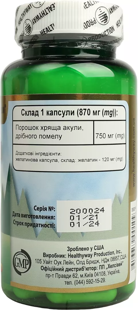 Склад 1 капсули — 870 мг (мг): порошок хряща акули, дрібного помолу — 750 мг.