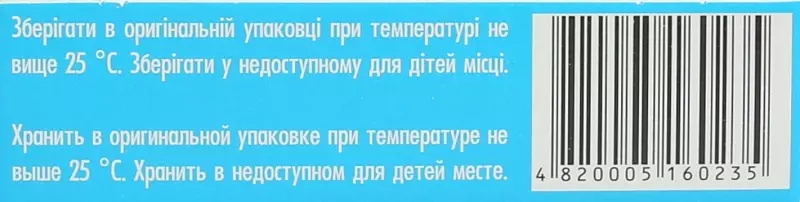 Зберігати в оригінальній упаковці при температурі не вище 25 °С.