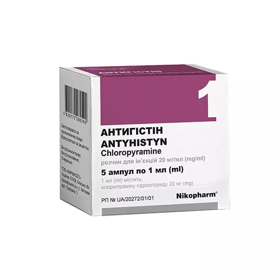 Антигістін розчин д/ін. 20 мг/мл по 1 мл №5