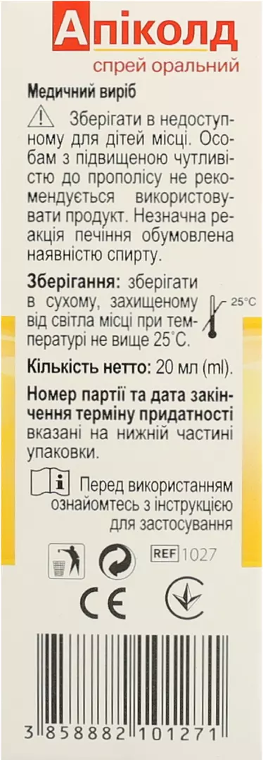 Інструкція для Апіколд спрей для горла флакон 20 мл Роздрукувати