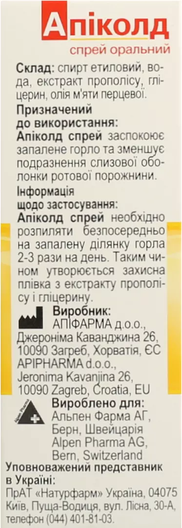 Апіколд спрей для горла флакон 20 мл, Апіфарма ЛТД