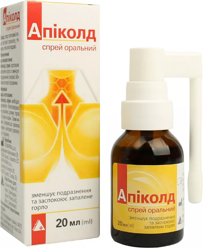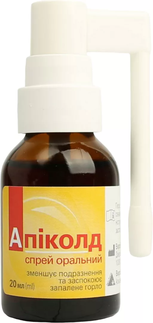 Апіколд спрей заспокоює запалене горло і зменшує подразнення слизової оболонки порожнини рота, які є частими симптомами застудних захворювань різного походження (грип, вірусна інфекція).