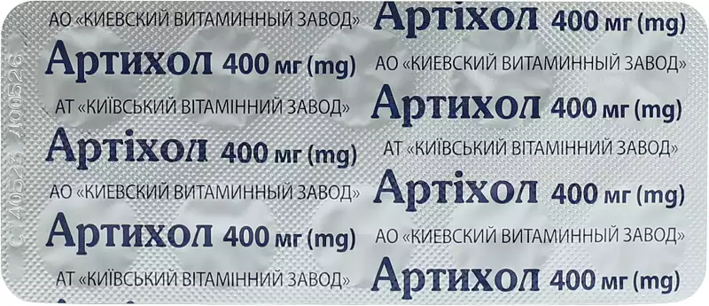 «Артіхол таблетки вкриті оболонкою 400 мг №40, Київський вітамінний завод» – лікарський засіб на основі сухого екстракту артишоку польового, який належить до групи препаратів, що впливають на травну систему та метаболізм. Він чинить жовчогінну, гепатопротекторну та сечогінну дію, а також сприяє зниженню рівня сечовини в крові та покращенню обмінних процесів в організмі. Препарат випускається у формі таблеток, вкритих плівковою оболонкою, по 400 мг. Відпускається без рецепту лікаря, однак перед початком застосування рекомендується консультація фахівця.