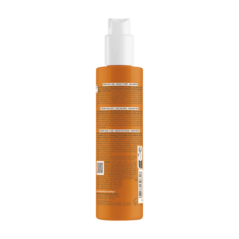 Сонцезахисний спрей Avène SPF 50+ створено спеціально для чутливої шкіри дітей віком від 2 років. Забезпечує дуже високий рівень фотозахисту від шкідливого впливу UVB- та UVA-променів. Формула без ароматизаторів гарантує максимальну переносимість і мінімізує ризик подразнення.