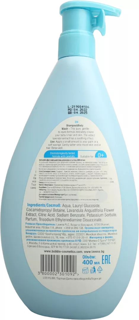 Беббл (Bebble) дитячий шампунь для волосся і тіла 400 мл, Лавена