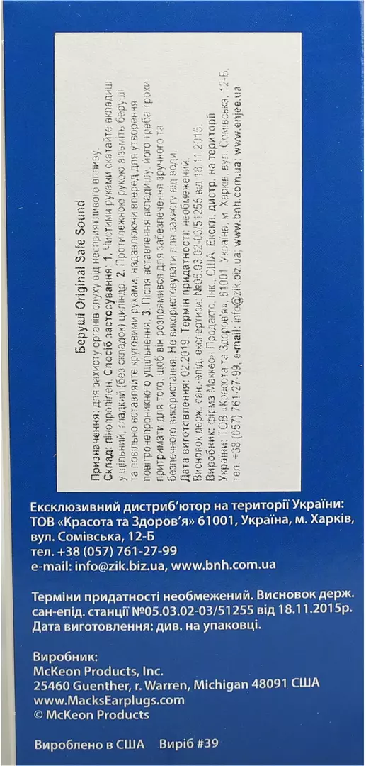 УВАГА: Беруші є засобом особистої гігієни. При захворюваннях вух рекомендується проконсультуватись з лікарем. Використовувати декілька разів або до моменту,