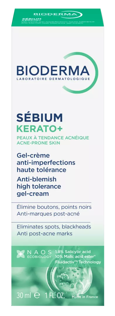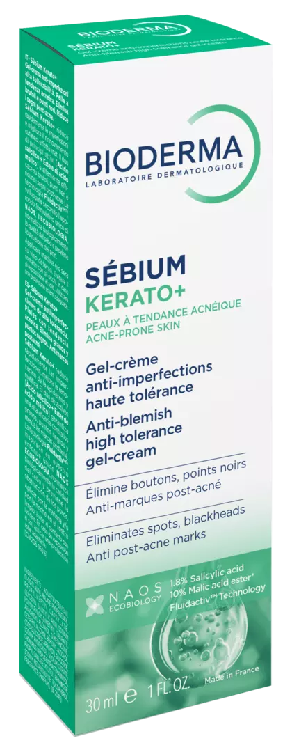 Дослідники Лабораторії Біодерма розробили Себіом Керато+ - поєднання високої ефективності проти прищів та високої переносимості для забезпечення комфорту шкіри. Себіом Керато+ швидко зменшує прищі,