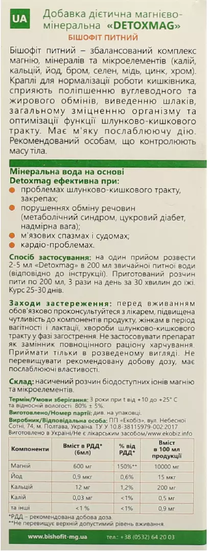 Бішофіт питний DetoxMag розчин по 100 мл у флак.