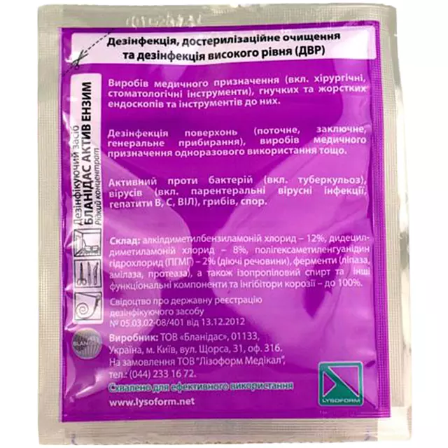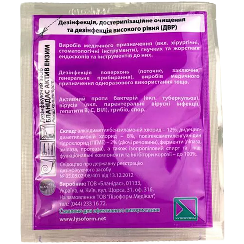 Склад: композиція ЧАС, ферменти (ліпаза, амілаза, протеаза). Властивості:-засіб без хлору та альдегідів;