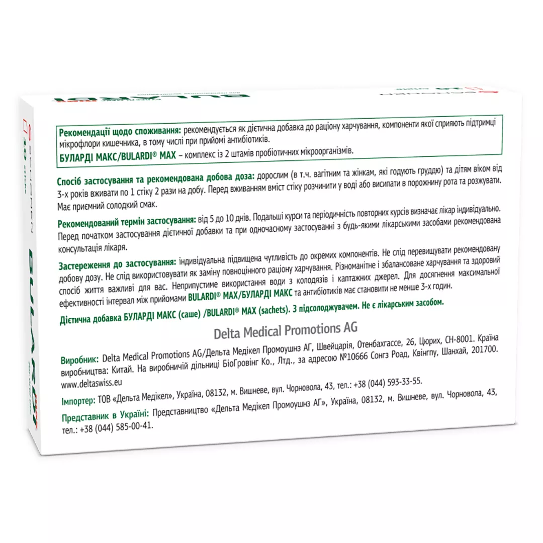 БУЛАРДІ МАКС/BULARDI® MAX – комплекс із 2 штамів пробіотичних мікроорганізмів.