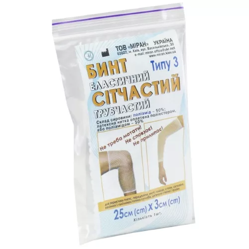 Бинт еластичний Міран Т-3 сітчастий трубчастий, 25 см х 3 см