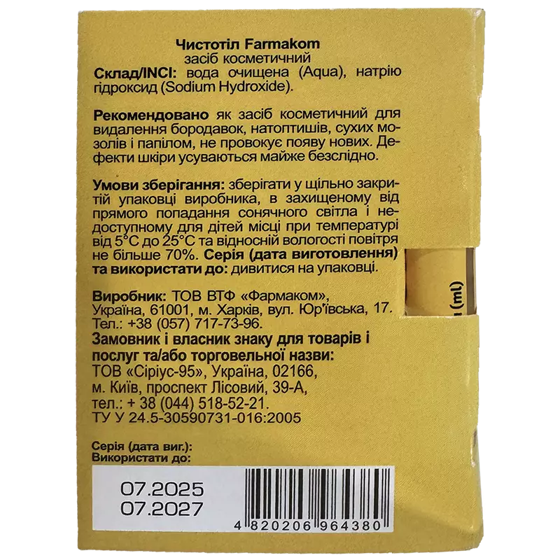 Виробник: ТОВ ВТФ «Фармаком», Україна, 61001, м. Харків, вул. Юр'ївська, 17.