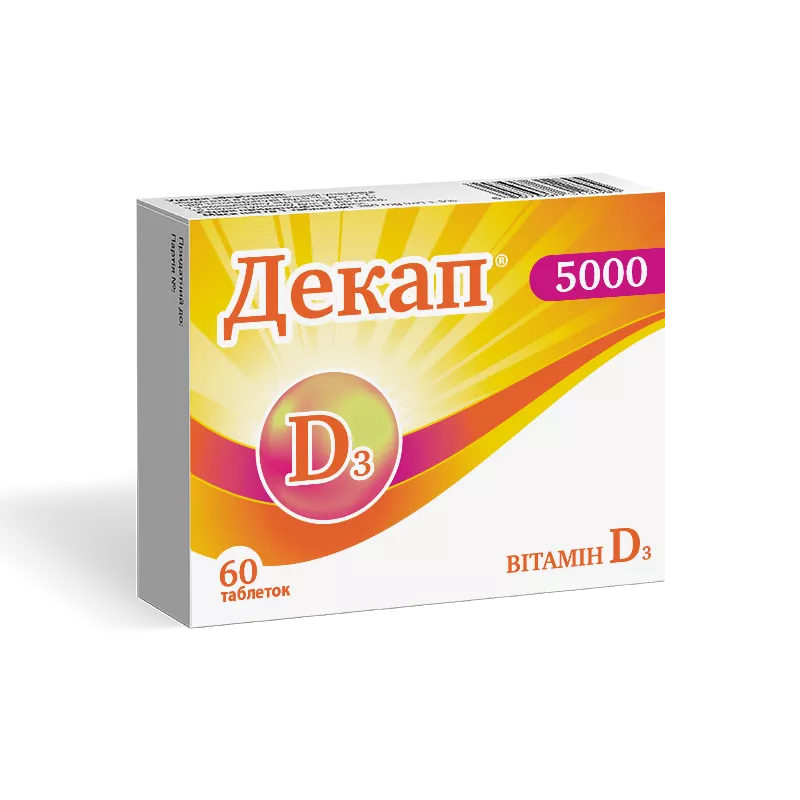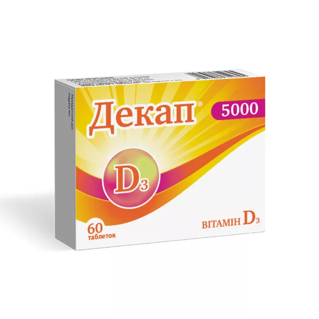 ДЕКАП® 5000 рекомендується в якості дієтичної добавки до раціону харчування як додаткове джерело вітаміну D3 (холекальциферолу) з метою підтримки його оптимального рівня в організмі.