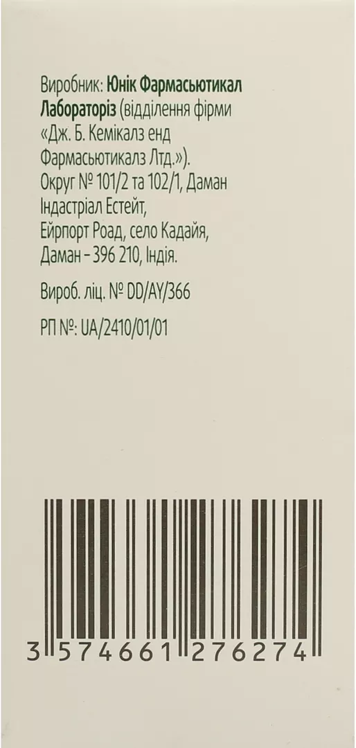 Виробник.Юнік Фармасьютикал Лабораторіз (відділення фірми «Дж. Б. Кемікалз енд Фармасьютикалз Лтд.»).
