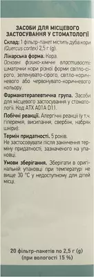 1 фільтр-пакет містить: дуба кори (Quercus cortex) 2,5 г.