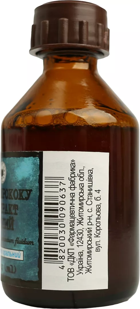 Лікарська форма. Екстракт оральний.Основні фізико-хімічні властивості: рідина темно-коричневого кольору, злегка пекучого смаку, своєрідного запаху. При зберіганні допускається утворення осаду.