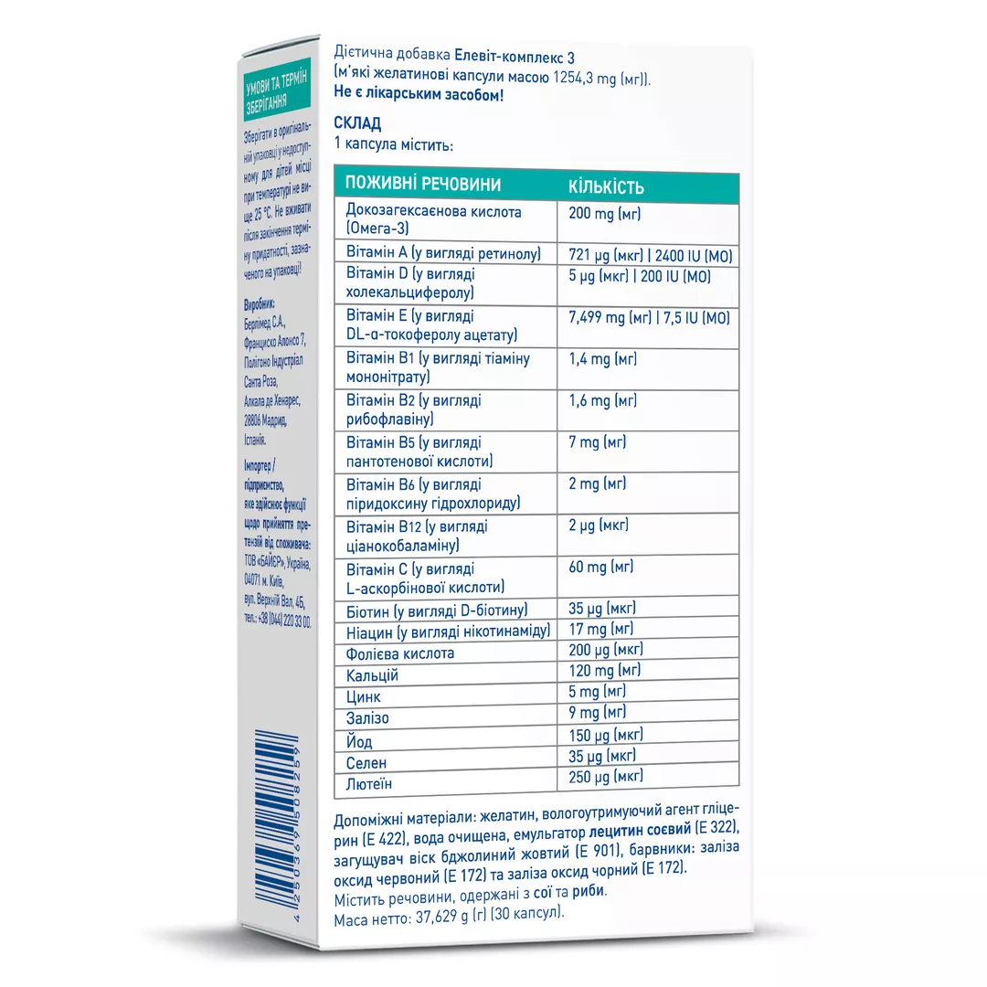 Елевіт-комплекс 3 капсули №30, БерліМед