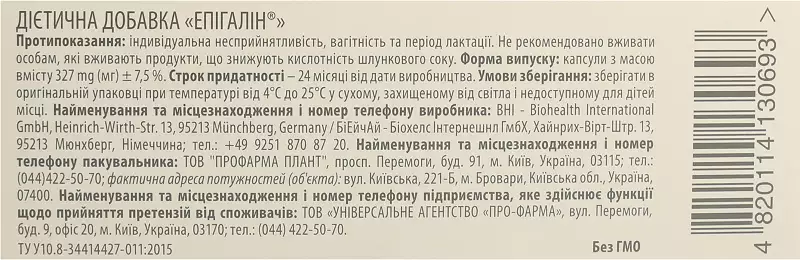 Епігалін капсули №60, BHI-Biohealth int.