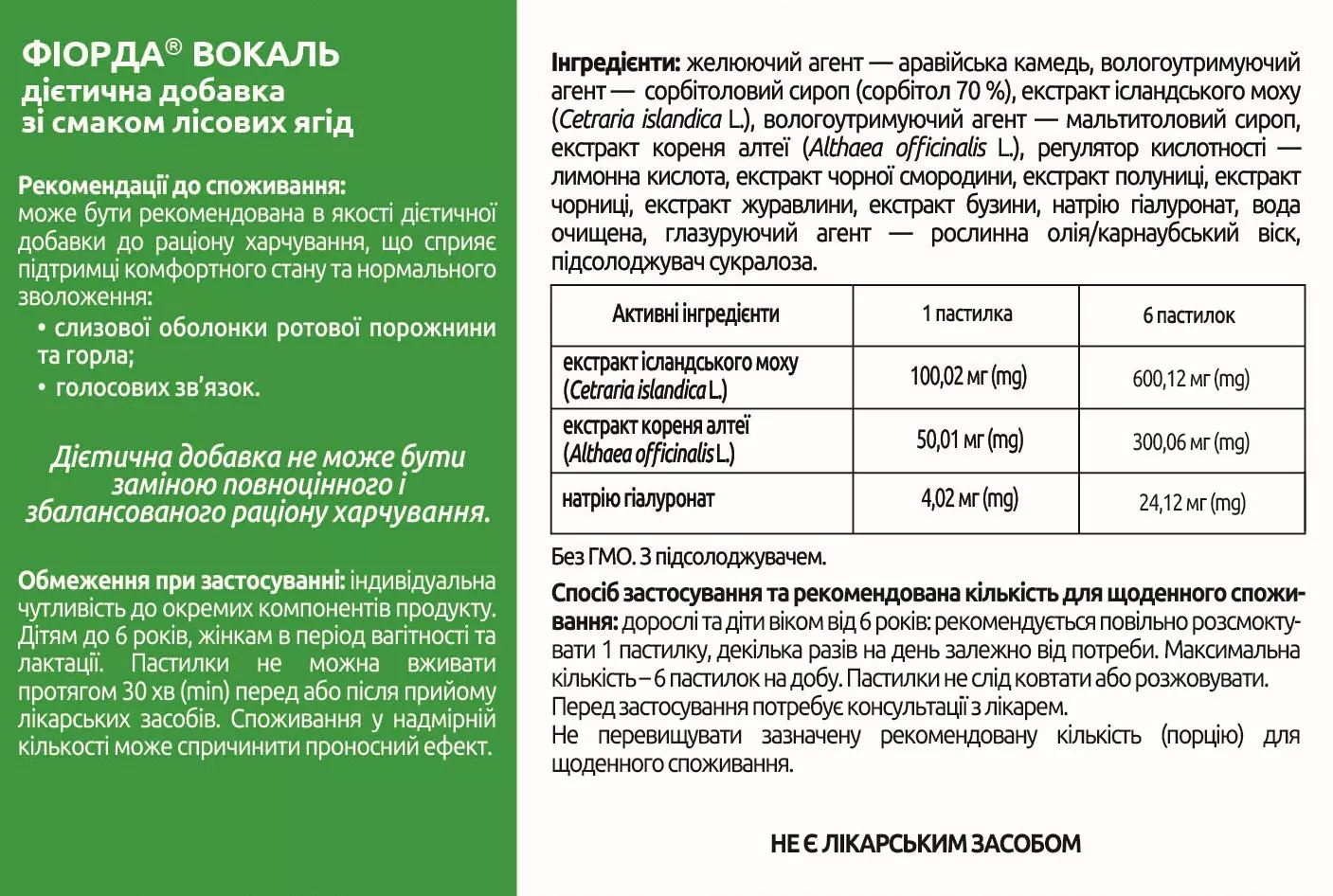 ФІОРДА ® ВОКАЛЬ дієтична добавка