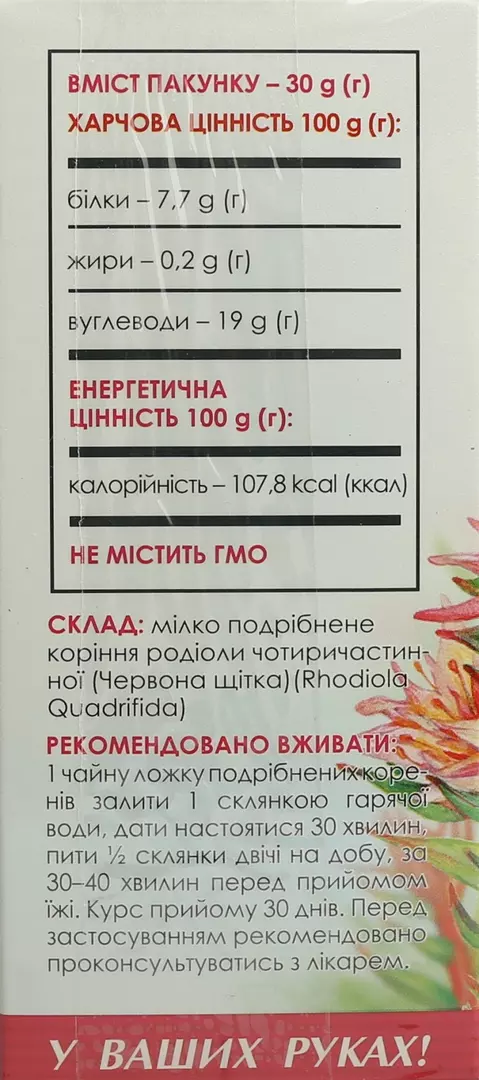 100 подрібнене коріння родіоли четирехчастної. Без ГМО.