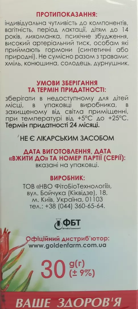 Індивідуальна чутливість до компонентів засобу, вагітність, період грудного вигодовування, дітям до 14 років, лихоманка, психічне збудження, високий артеріальний тиск, особам, які приймають гормони (синтетичні або природні). Не сумісно з травами: хміль, конюшина, солодка, лопух.