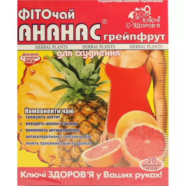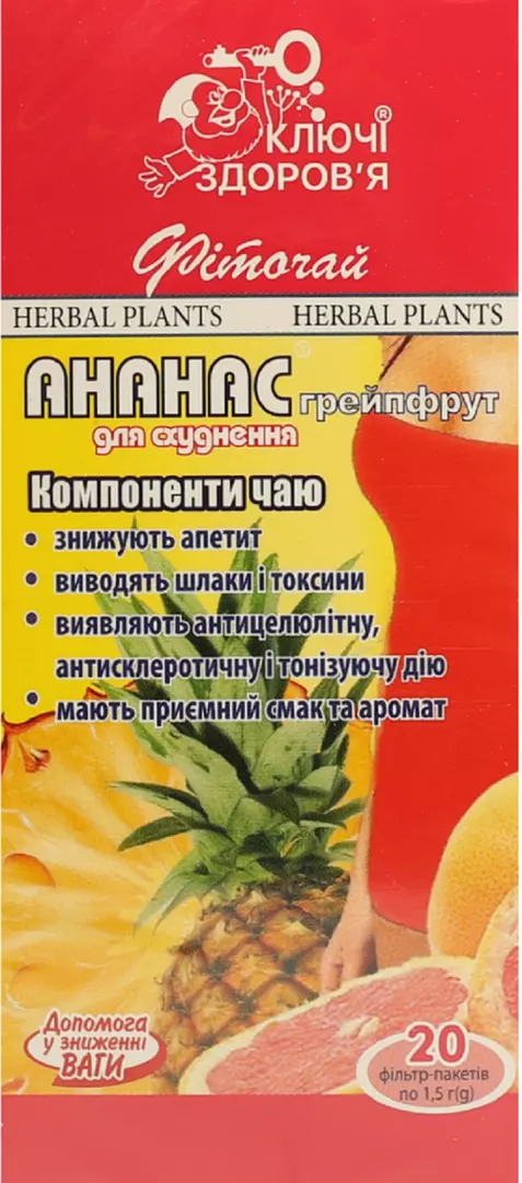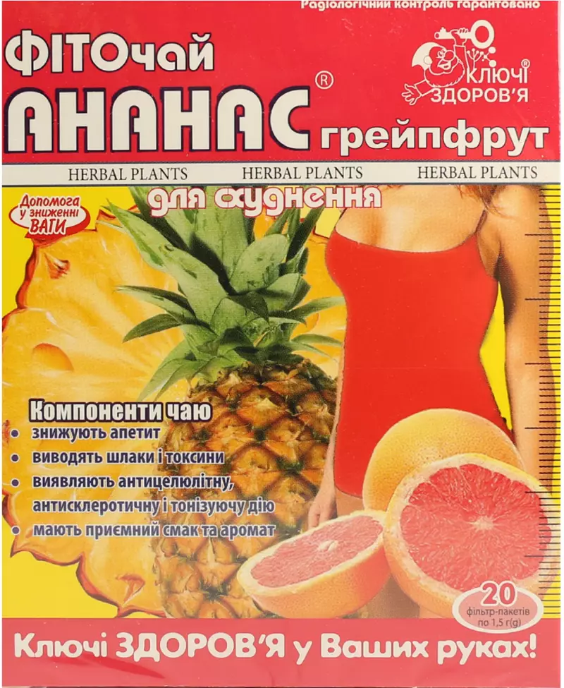 Фіточай Ключі Здоров'я Ананас/грейпфрут для схуднення у фільтр-пакетах 1,5 г №20, Ключі Здоров'я