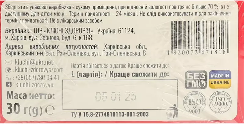 дієтична добавка до раціону харчування – додаткове джерело біологічно активних речовин. Сприяє нормалізації процесів обміну, виведенню токсичних речовин з організму, має м’які послаблюючі властивості. Добавки дієтичні не слід використовувати як заміну повноцінного раціону харчування.