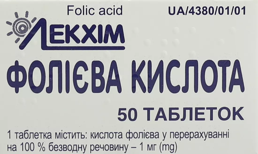 Фолієва кислота та її похідні. Кислота фолієва. Код АТХ В03В В01.
