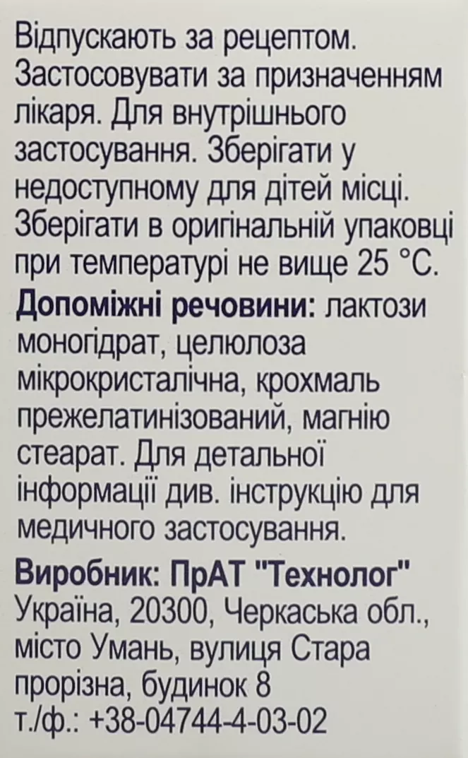Категорія відпуску. За рецептом. Виробник.ПрАТ «Технолог».