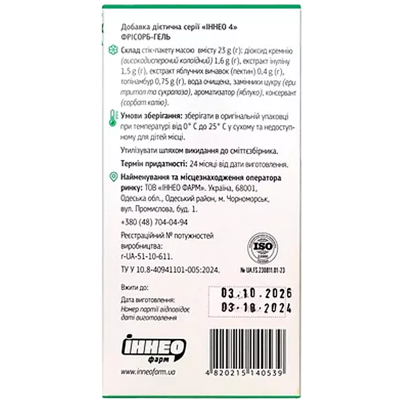 Інструкція для Фрісорб гель яблуко №20 у стік-пак. Роздрукувати