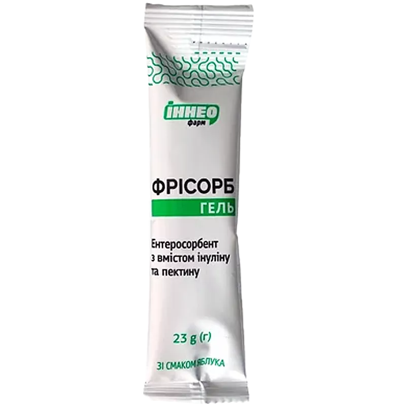 Клітковина яблука i топінамбура надає додатковий детоксикаційний ефект та відновлює фізіологічний ритм перистальтики. Пектин захищає кишечник від надмірної патологічної стимуляції. Таким чином, ФРІСОРБ-ГЕЛЬ нормалізує перистальтику кишечника, зменшує прояви діареї і покращує характер стільця, знижує прояви метеоризму та спазму кишечнику, значно рідше, ніж інші ентеросорбенти, викликає запори і може застосовуватися більш тривалий час.